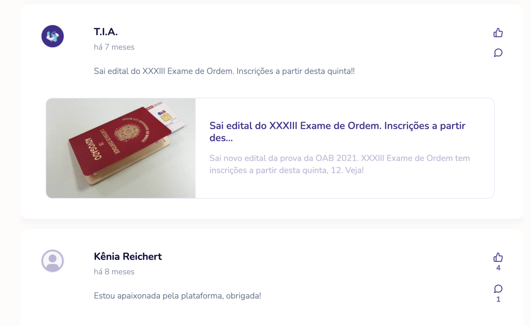 O feed de interação entre as turmas promove atividades de fixação e revisão das matérias.